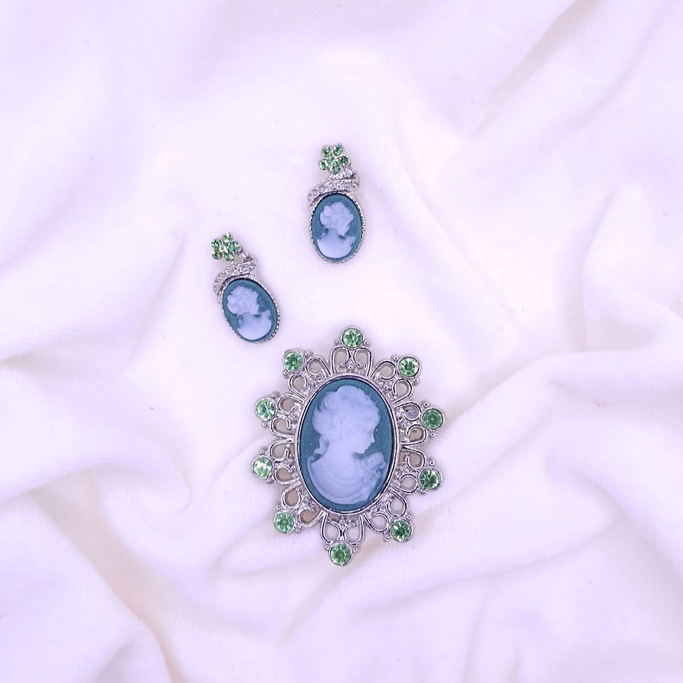 Conjunto de Camafeu e Brincos Azul